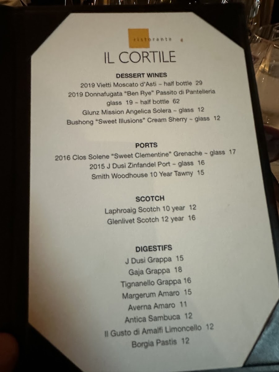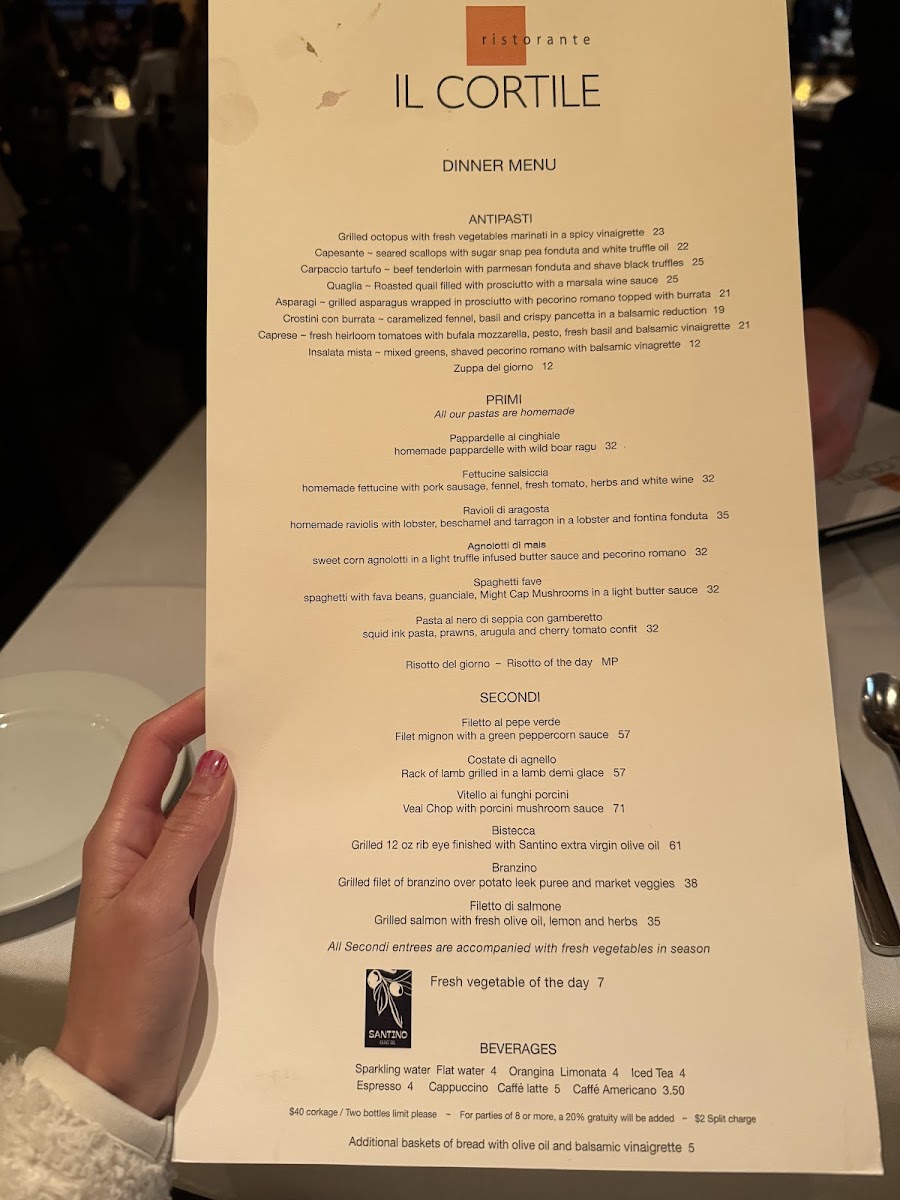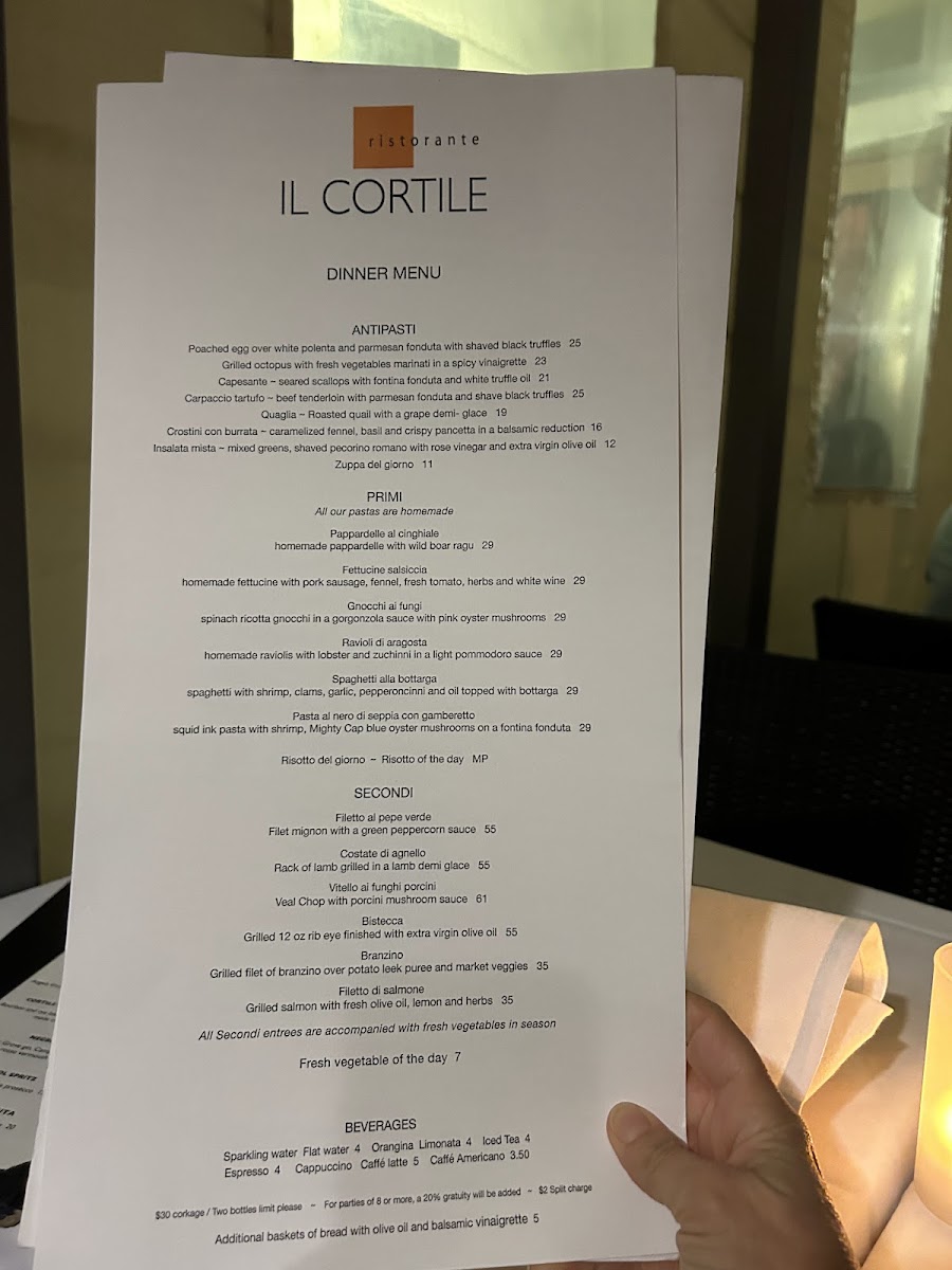 Each plate is a testament to fine dining, marrying flavor with elegance. Highlighted by an ambiance that enhances romantic dining or special celebrations, Il Cortile ensures an unforgettable experience. Indulge in refreshing beverages like Cappuccinos and sparkling water, and don’t miss out on the tiramisu that wraps up the meal perfectly.